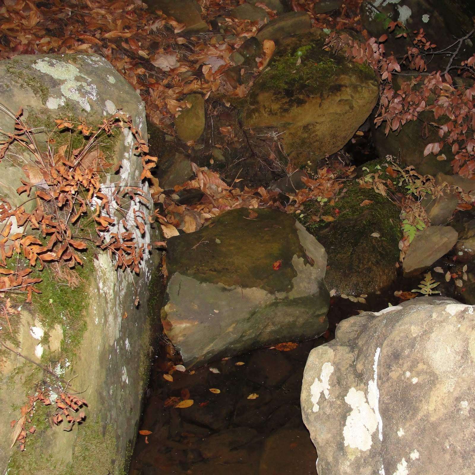 I had only taken a few steps back into the off-shoot when I stepped into a deep hole between several rocks. The hole halted me in my tracks and my shin banged against the rocky side of the hole. The light launched out of my hand. It is only by God’s grace that I didn’t break my leg in a hole like that — my momentum had put quite a strain on my leg. I sat there several minutes recovering from the sharp pain in my shin. Then I realized that the light was gone and I couldn’t find it. When it hit the ground, it turned off. What a fine mess!